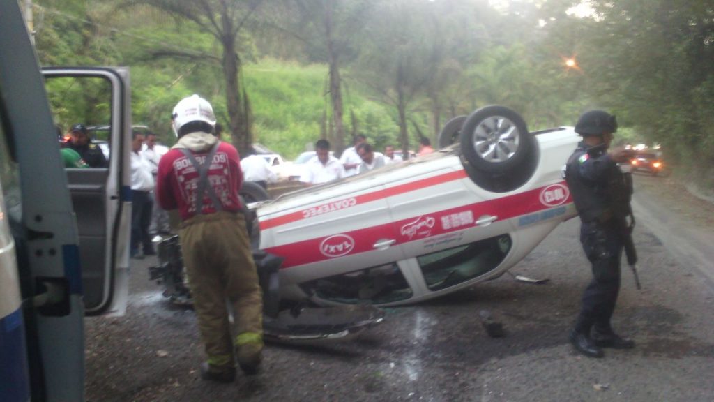 Xalapa, Ver.- Por la volcadura de un taxi, la circulación vehicular en la autopista Xalapa-Coatepec se ha visto entorpecida, por las maniobras de rescate.
