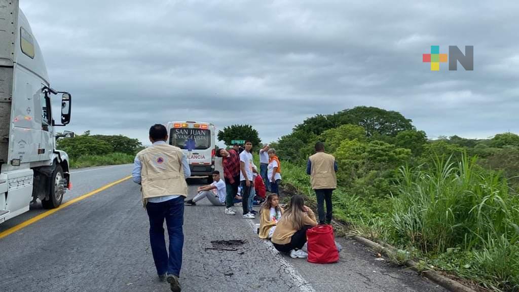 15 personas lesionadas deja volcadura de autobús en carretera Acayucan-Salina Cruz