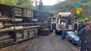 Xalapa, Ver.- Un camión de pasajeros de la empresa Excélsior se volcó cuando circulaba a exceso de velocidad sobré la carretera Teocelo-Ixhuacán.