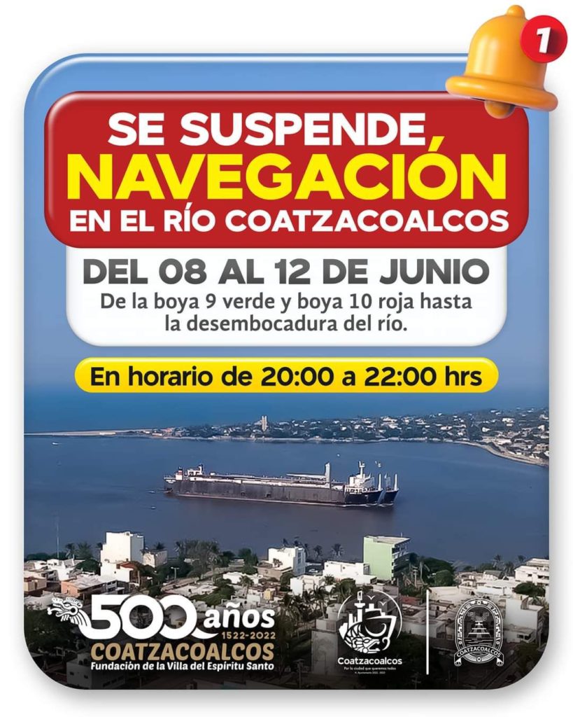 Además se suspendió la navegación desde el 8 hasta el 12 de junio de la boya 9 verde hasta la boya 10 roja.