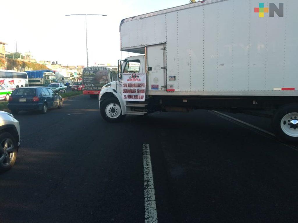 Desde la mañana de este martes integrantes de la Alianza Mexicana de Transportistas (Amotac), se manifestaron sobre la autopista Veracruz- Cardel a la altura del kilómetro 13.5.