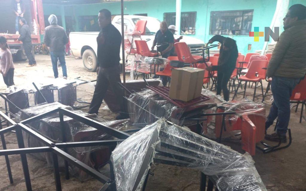 Entregan mobiliario a escuelas afectadas por lluvias en zona de la Huasteca