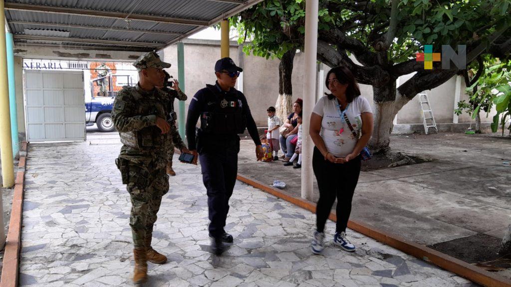 Durante el transcurso de la mañana de este lunes llegaron policías municipales y elementos de la Marina Armada de México para tomar conocimiento sobre lo sucedido. Las clases fueron suspendidas.