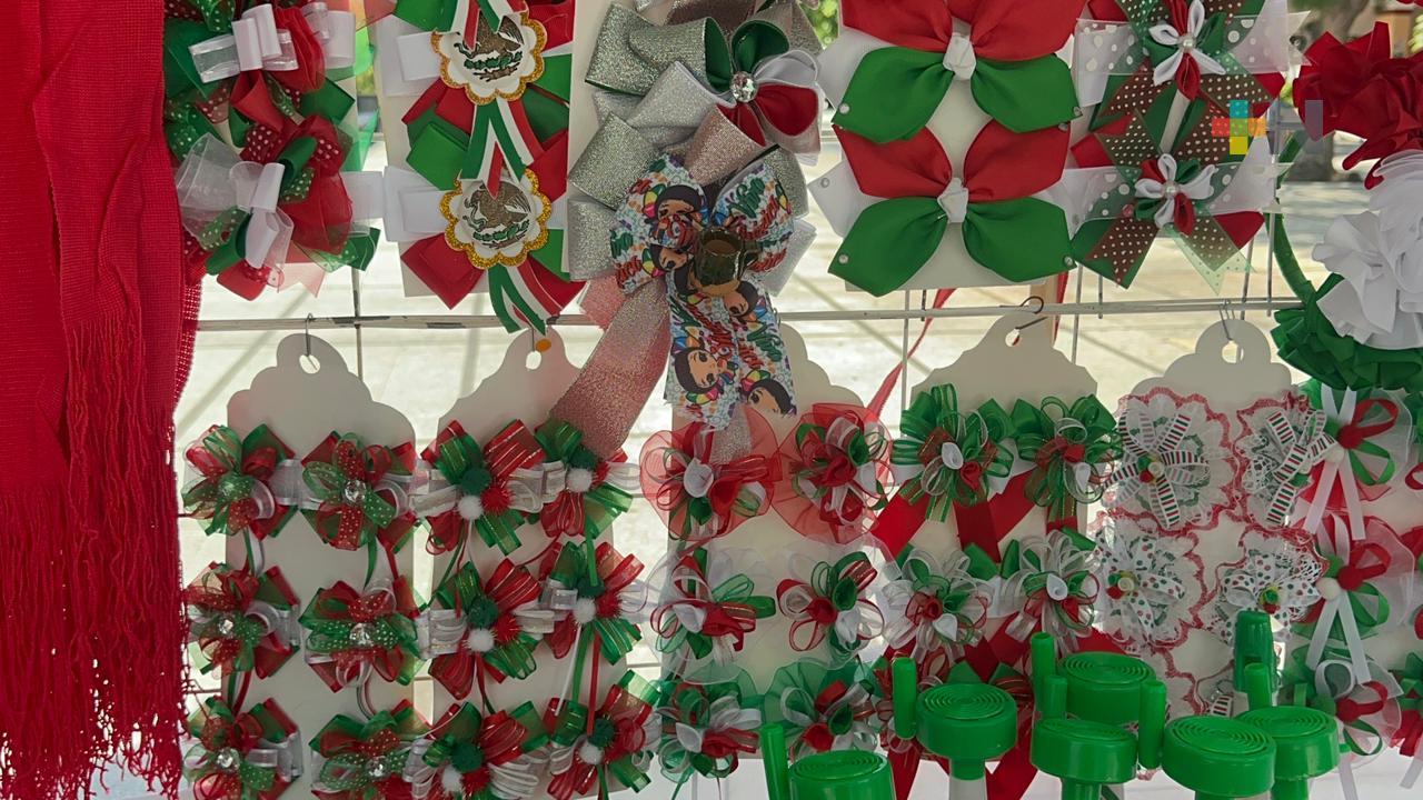 Para los comerciantes es momento en que sus ventas se incrementan, pues cambian productos que regularmente ofrecen para pasarlos a las banderas, moños, muñequitos, trenzas, cinturones , sombreros y más.