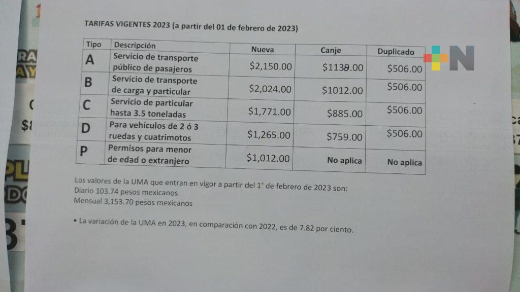 Xalapa, Ver.- Con la modificación publicada este 7 de febrero en la página de la Secretaría de Seguridad Pública en la Dirección General del Transporte, el costo de las licencias incrementó de acuerdo a las Unidades de Medida y Actualización (UMA), por lo que todas ostentan aumento de 7.82 por ciento al momento de emitir la línea de pago.
