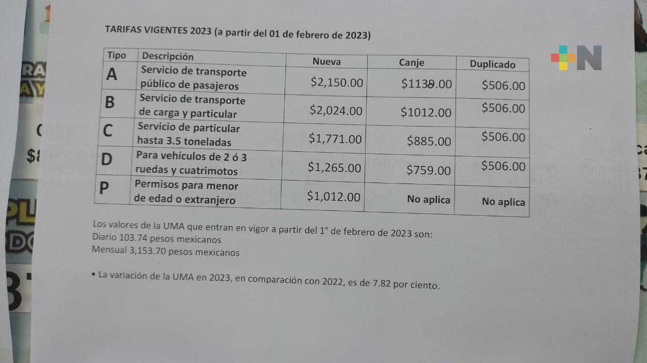 Xalapa, Ver.- Con la modificación publicada este 7 de febrero en la página de la Secretaría de Seguridad Pública en la Dirección General del Transporte, el costo de las licencias incrementó de acuerdo a las Unidades de Medida y Actualización (UMA), por lo que todas ostentan aumento de 7.82 por ciento al momento de emitir la línea de pago.
