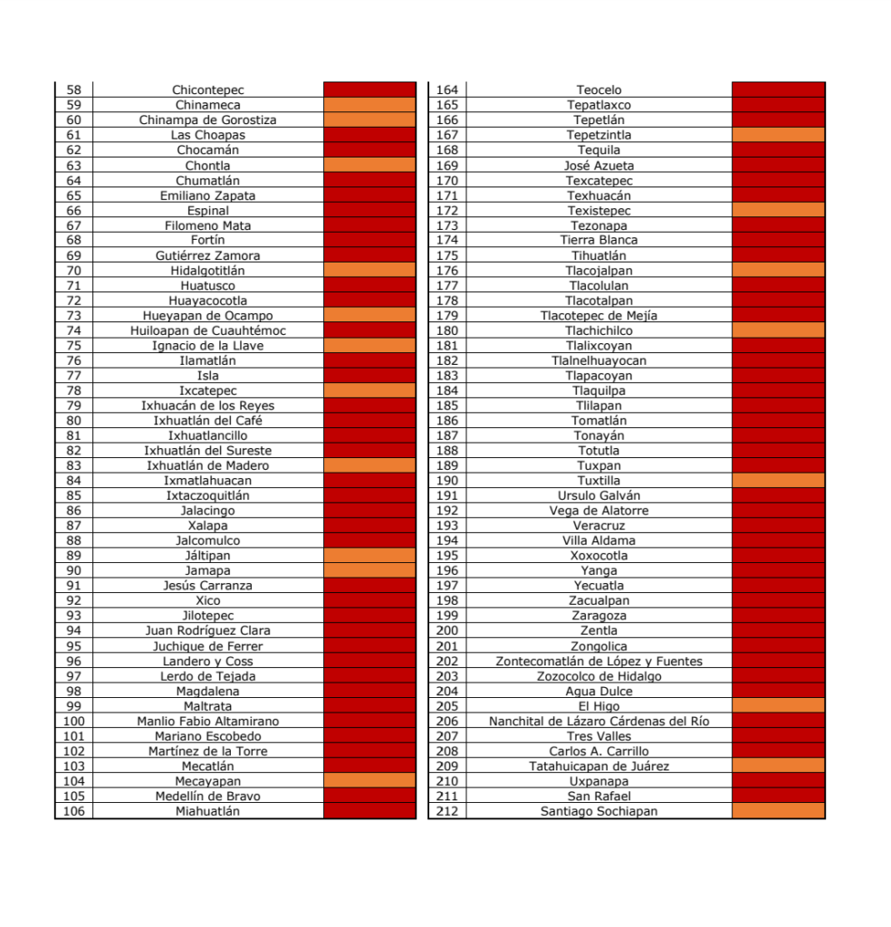 La región de Veracruz – Boca del Río – cuenca del Papaloapan tiene municipios en riesgo máximo y en riesgo alto.