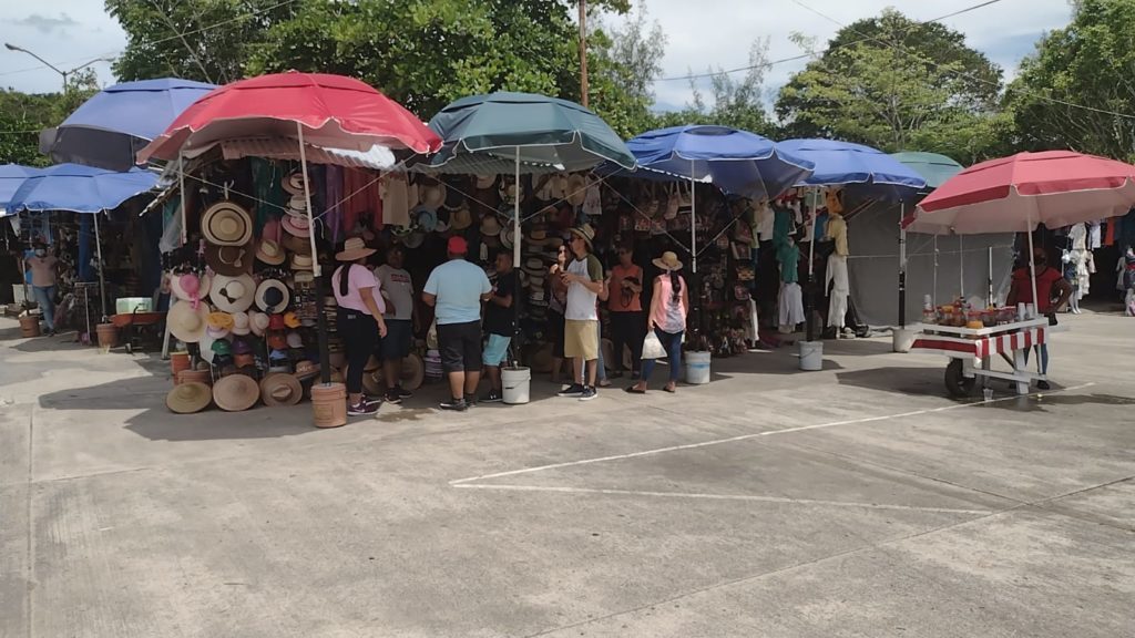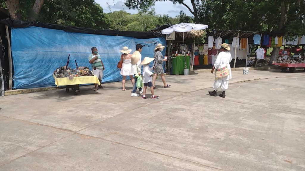 El periodo vacacional inició y la zona arqueológica sigue cerrada al público, así que muy pocos turistas llegan hasta donde está el área de puestos de artesanías y venta de alimentos.
