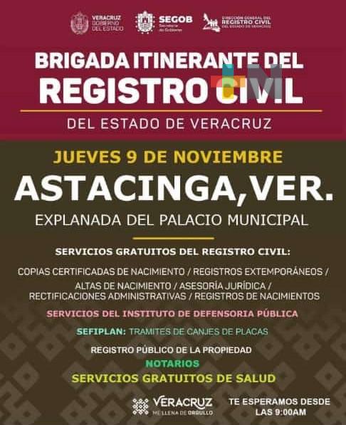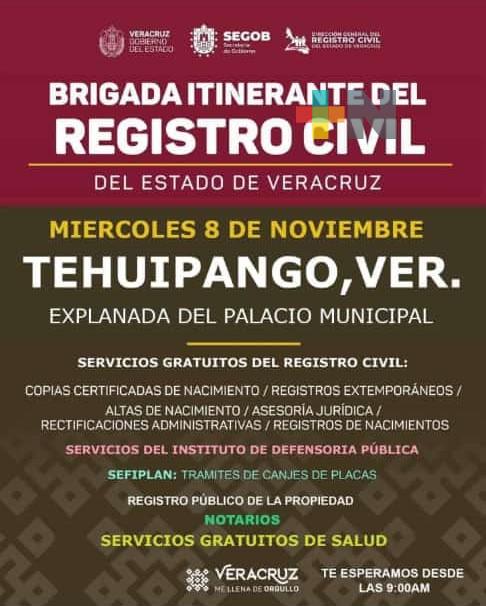 Tehuipango, Ver.- La brigada itinerante del Registro Civil llegará esta semana a municipio ubicados en la zona de la sierra de Zongolica, con la finalidad de brindar diferentes servicios también de otras dependencias.