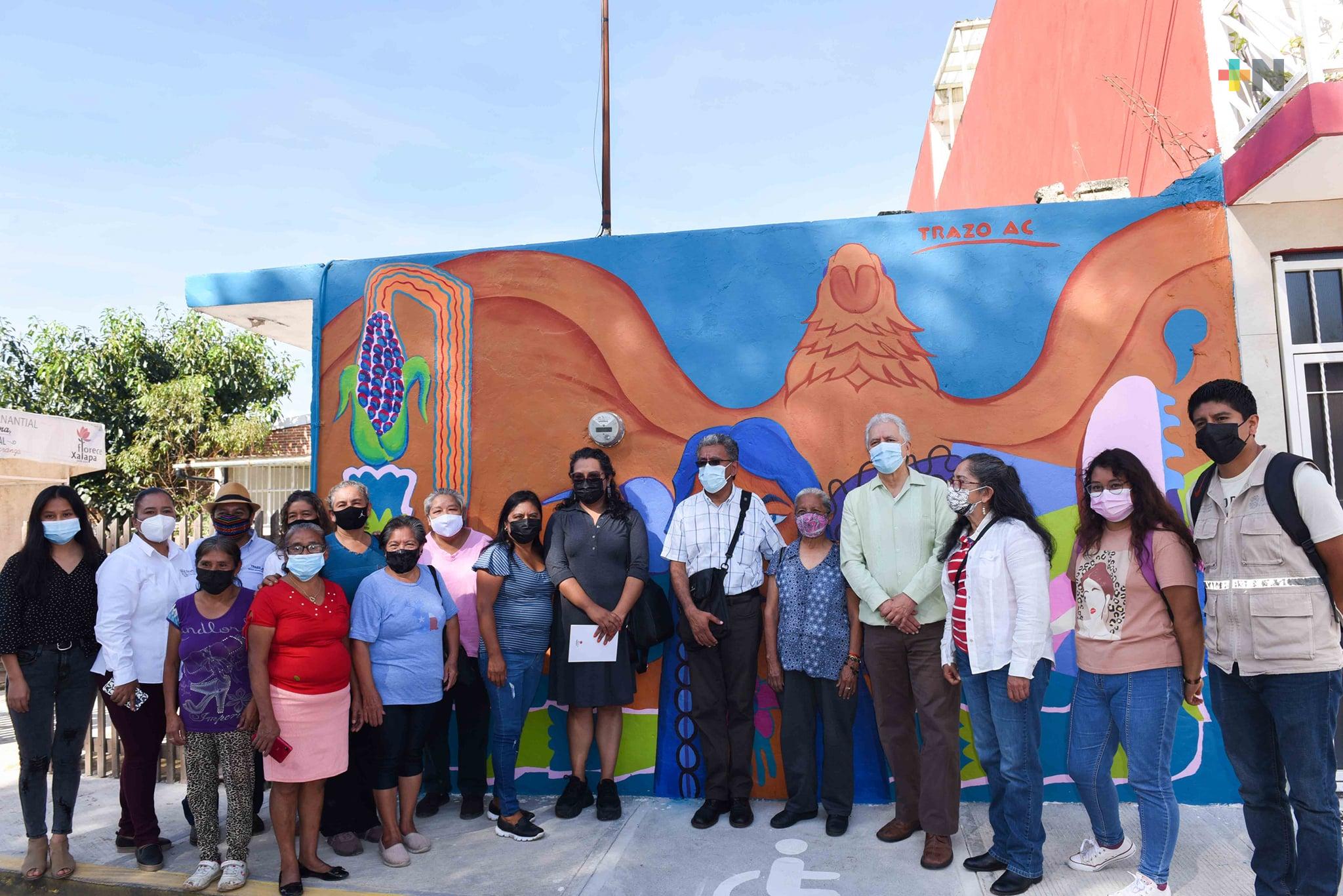 Expresó que la obra se realizó en una barda del Centro de Gestión Comunitaria (CGC) donde participaron las y los vecinos al arreglar y preparar el muro para ser pintado. “Se buscó darle color a nuestras calles y colonias en comunidad, dignificar los espacios públicos, regenerar el tejido social”.