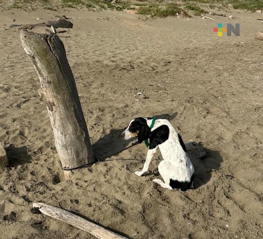Abandonan a perra en playa de Coatzacoalcos