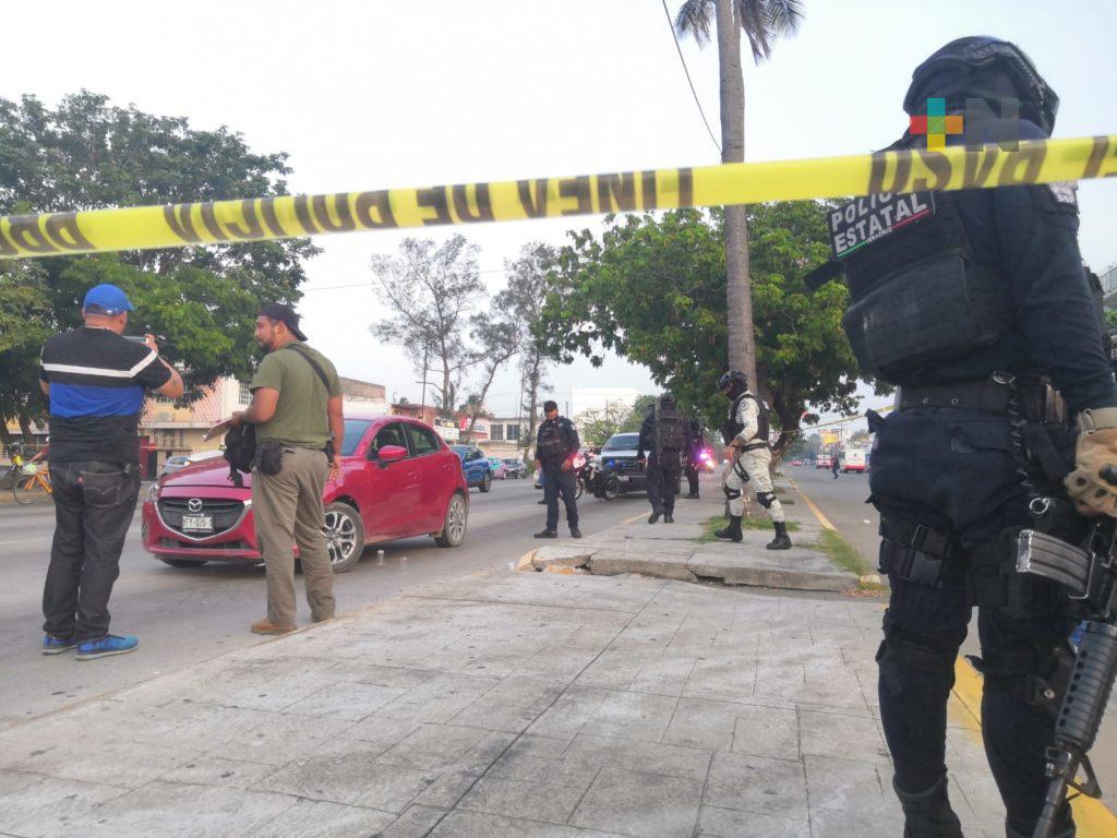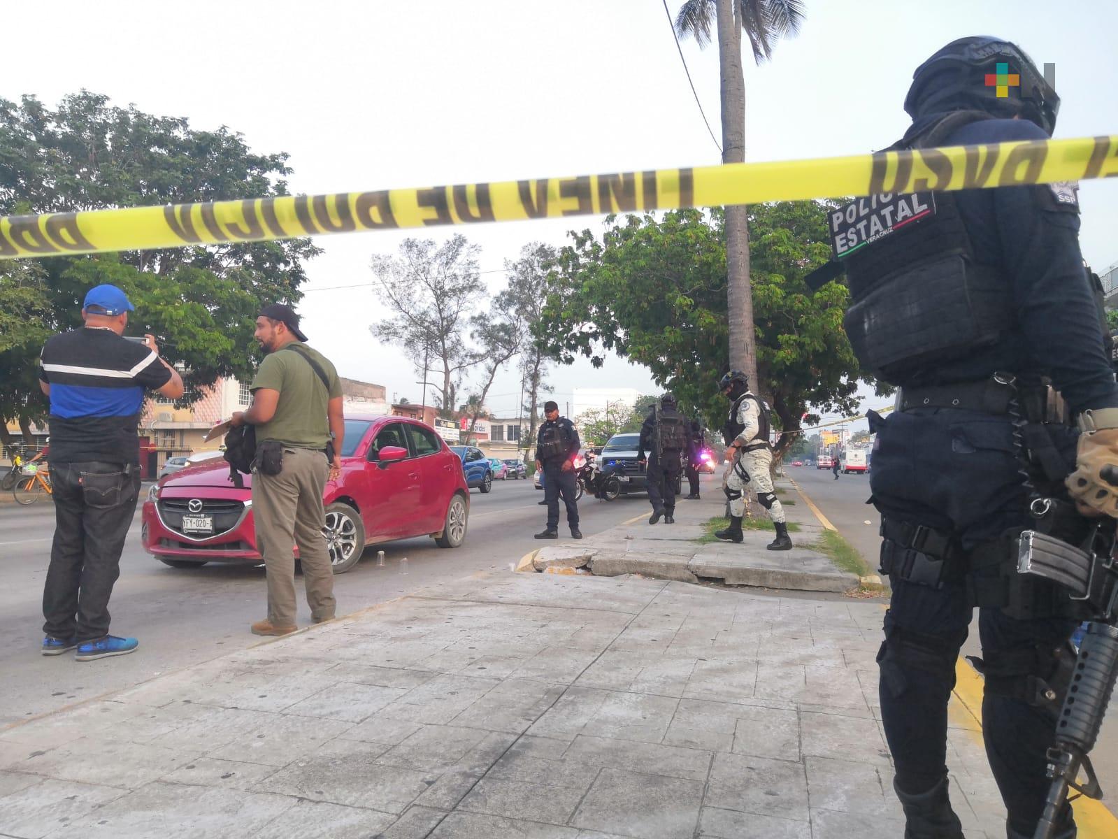 Veracruz, Ver.- Elementos de la Guardia Nacional y de la Policía Estatal acordonan un área de la avenida Salvador Díaz Mirón en su cruce con la calle Simón Bolivar.