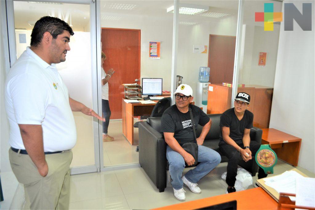 Admirador del boxeador ucraniano Vasyl Lomachenko de quien gusta su estilo de pelear, el veracruzano Abel Hernández González estuvo de visita en el Instituto Veracruzano del Deporte junto con su entrenador José Camilo Marcial.