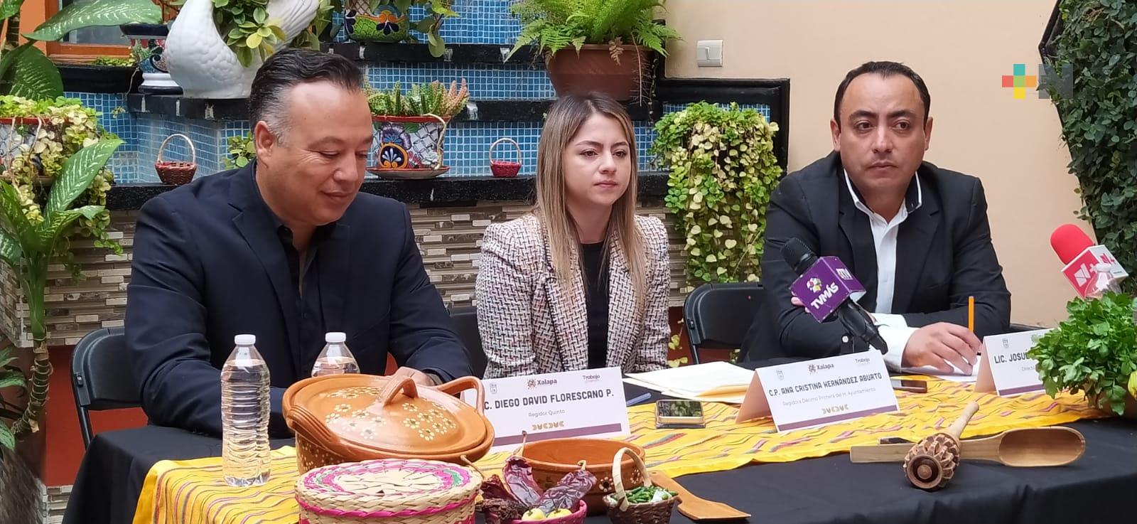 La presidenta de la Comisión de Turismo, Ana Cristina Hernández Aburto, regidora 11 del ayuntamiento de Xalapa, y el director de Turismo municipal, Josué Vázquez González, presentaron la convocatoria para elegir el que será el platillo representativo de Xalapa.