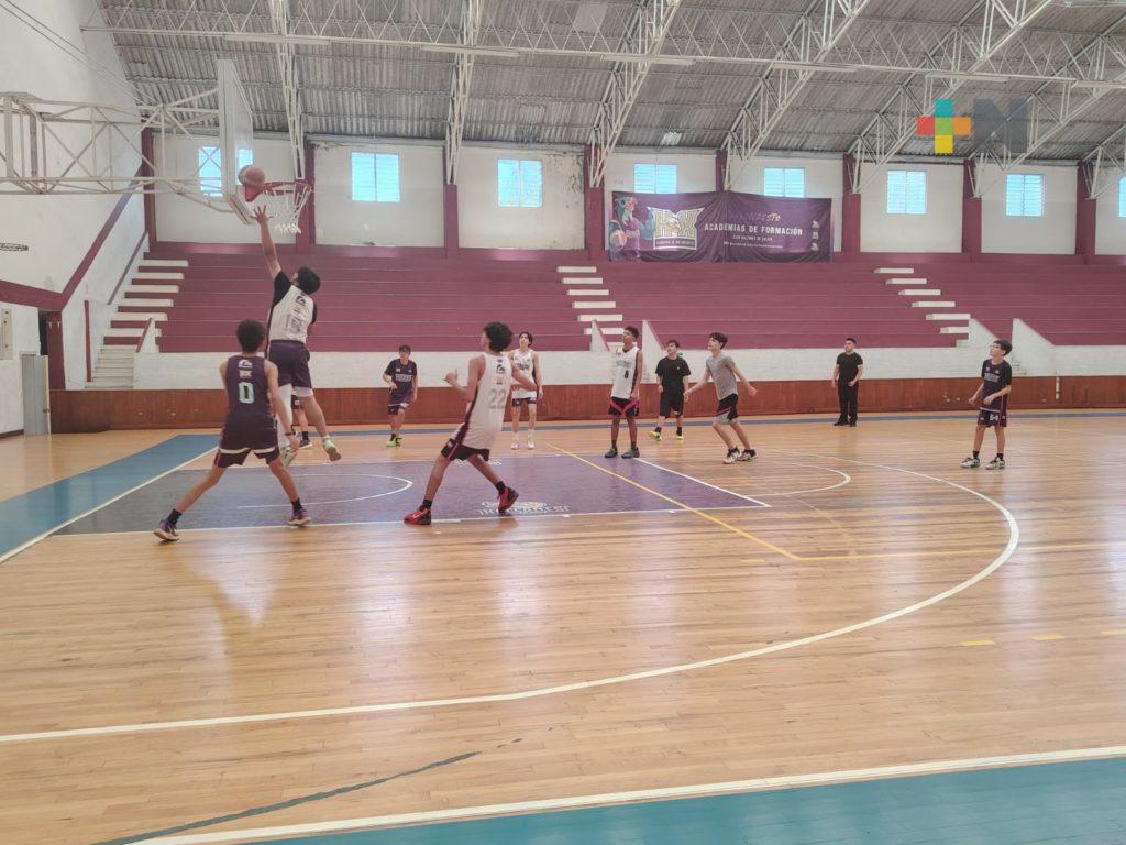 Xalapa, Ver.- Se realizó en el gimnasio Allende, un encuentro amistoso de preparación entre elementos de turnos matutino y vespertino de la academia de formación de la organización Halcones de Xalapa de baloncesto.