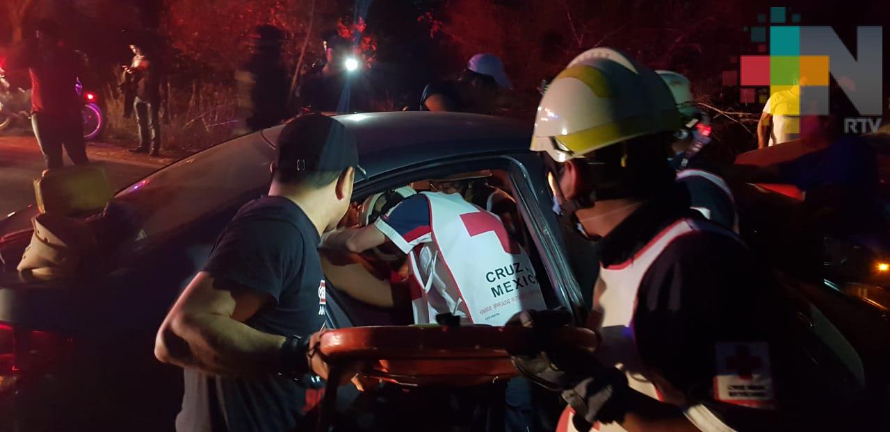 Coatzacoalcos, Ver.- Un fuerte accidente entre dos vehículos particulares se registró la tarde noche de este domingo dejó como resultado nueve personas lesionadas en la carretera Coatzacoalcos-Minatitlán Canticas.