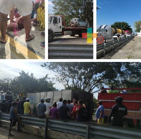 El accidente provocó una larga fila de vehículos en la autopista en el sentido de Acayucan hacia Coatzacoalcos y Minatitlán.