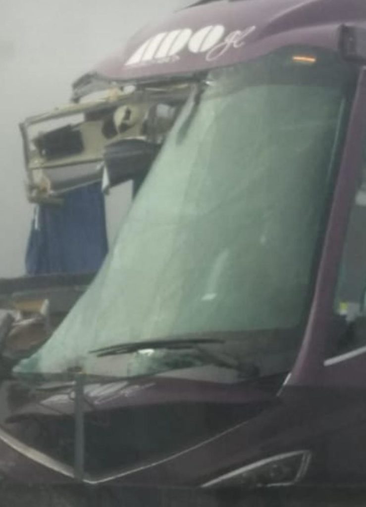 El conductor del autobús ADO a pesar de que intentó esquivar la colisión, chocó de costado, terminando destrozado de su parte delantera y lateral derecha, se habla de al menos nueve lesionados y dos personas fallecidas.