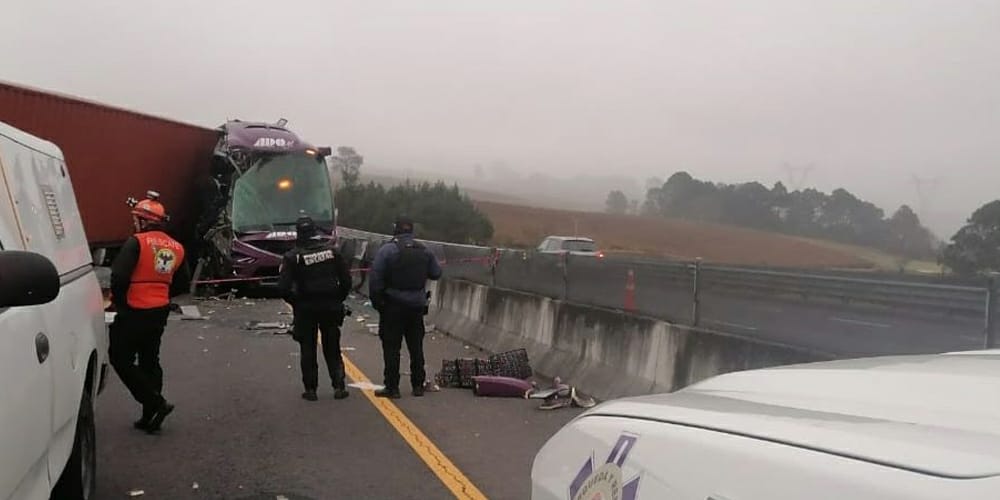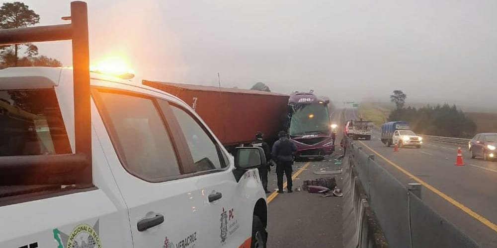 Accidente en tramo Perote-Xalapa entre autobús y tráiler deja nueve lesionados y dos fallecidos
