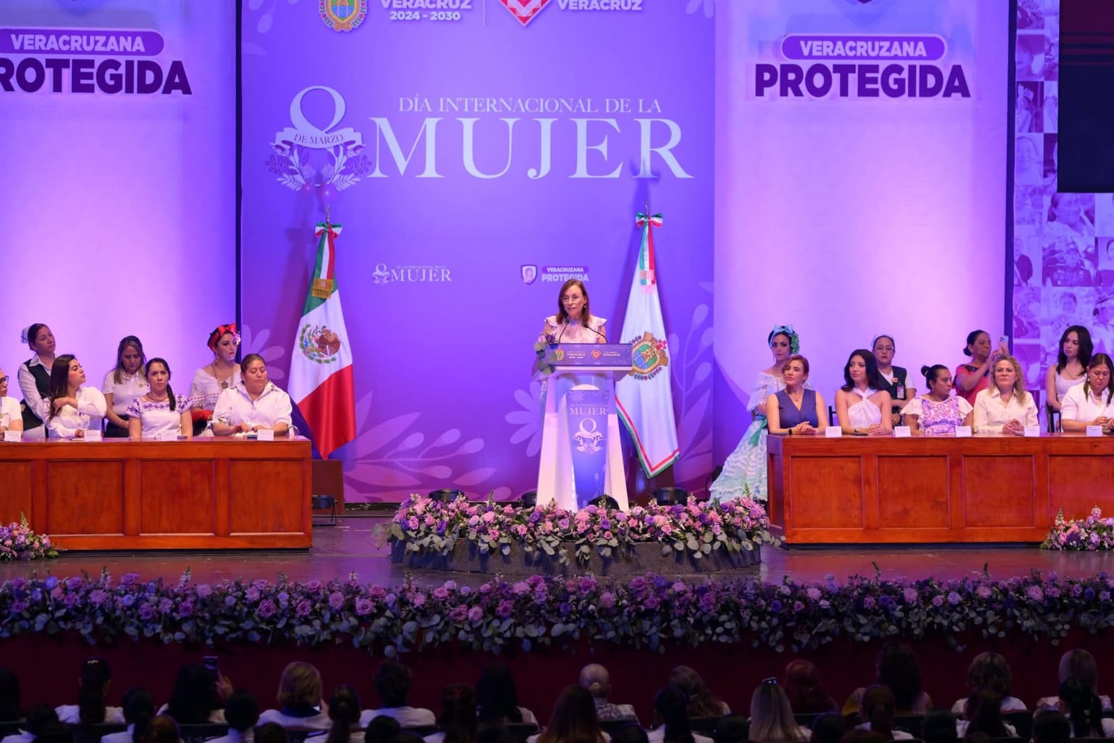 Veracruz, Ver.- En el marco de la conmemoración por el Día Internacional de la Mujer, la gobernadora Rocío Nahle García se refirió a las acciones de atención dirigidas a mujeres a través del programa Veracruzana Protegida, que ha registrado más de 2 mil 400 solicitudes.