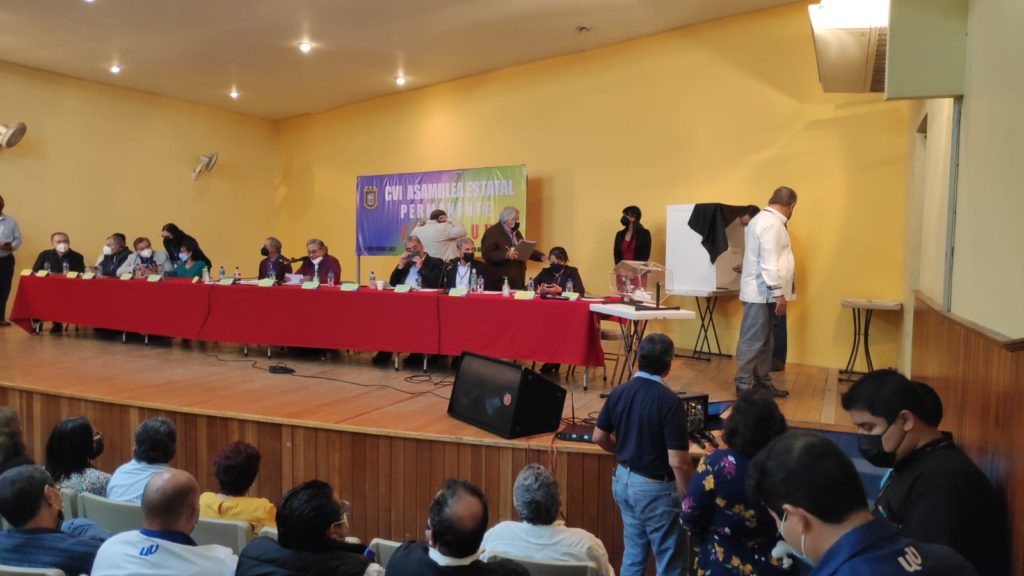 Previamente a la firma del convenio con la Universidad, se celebró la CVI Asamblea Estatal Extraordinaria, en donde se llevó a cabo la votación libre, directa y secreta de cada uno de los delegados seccionales, secretarios regionales y del Comité Ejecutivo Estatal para aprobar el acuerdo con la Universidad.
