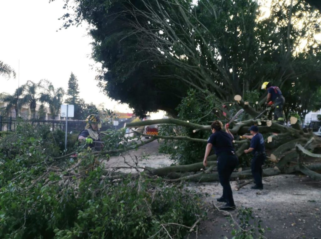 - Policía Estatal y Policía Vial apoyan en el retiro de árboles caídos por los fuertes vientos
