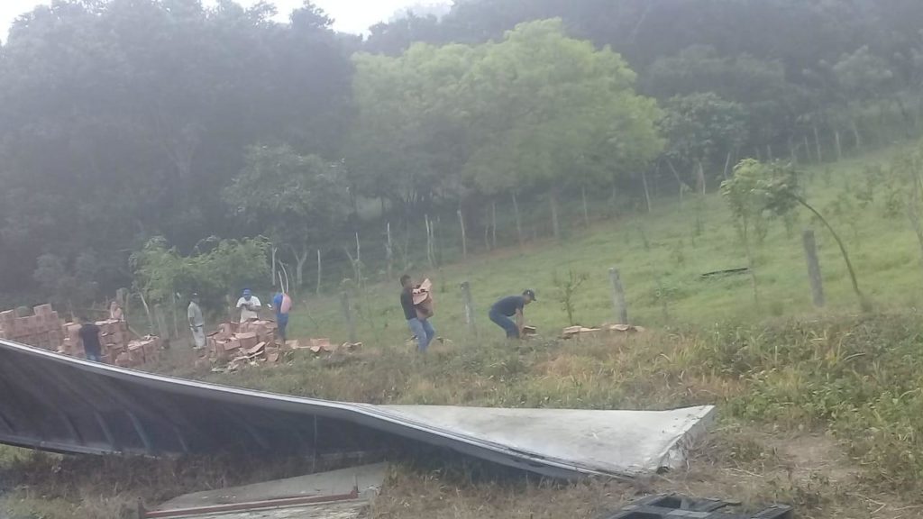 Los hechos ocurrieron cuando el trailer con viguetas le cerró el paso a trailer con cerveza y tras el percance, la caja donde transportaban el producto, terminò volcado y todo esparcido sobre el monte.