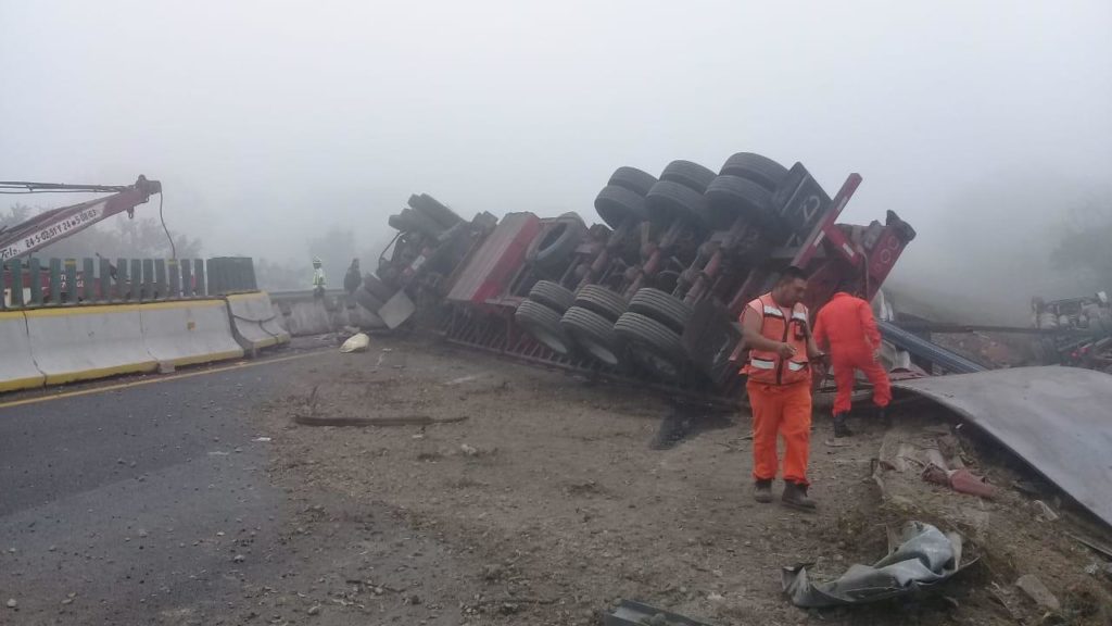 Se trata de un choque entre una unidad que transportaba varias toneladas de cerveza y otra unidad con cargamento de viguetas para construcciòn.