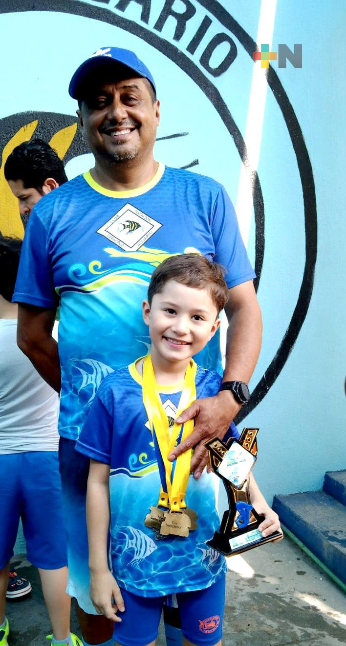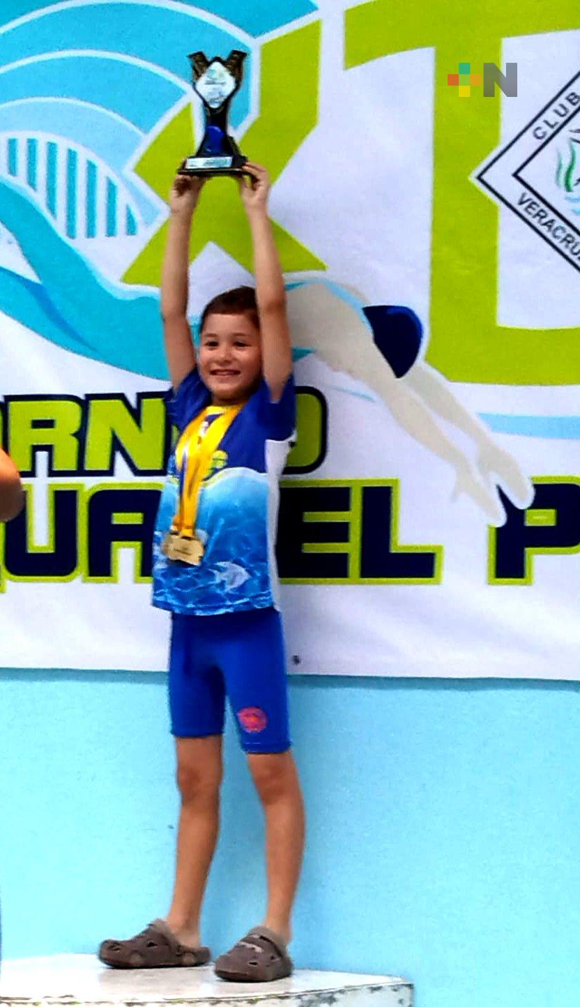 Manolo González Bretón, en categoría 9 años, aportó presea de segundo lugar en la prueba de 50 mariposas, y tres medallas más de tercer lugar, en 50 libre, 50 dorso y 50 pecho.