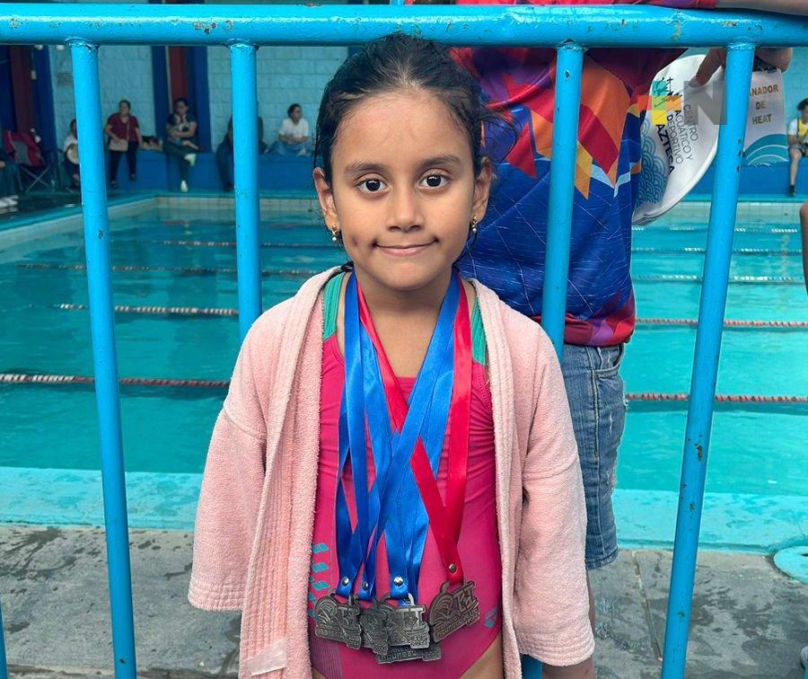 Ana Victoria Mendoza Mejía se adjudicó medallas de segundo lugar en las pruebas de 25 libre, 25 dorso y 50 dorso libre, así como de tercer lugar en 25 pecho, en la categoría 7-8 años.