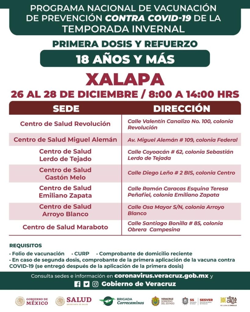 Acuda a vacunarse, último día de refuerzo contra Covid-19 en Xalapa
