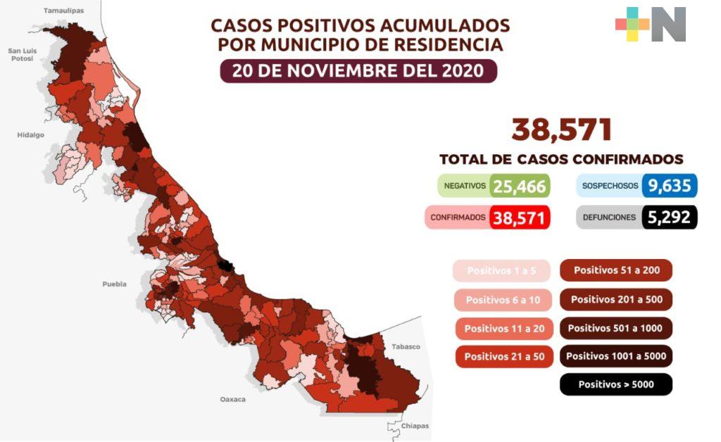 Acumula Veracruz 38 mil 571 casos positivos y 5 mil 292 muertes por COVID-19