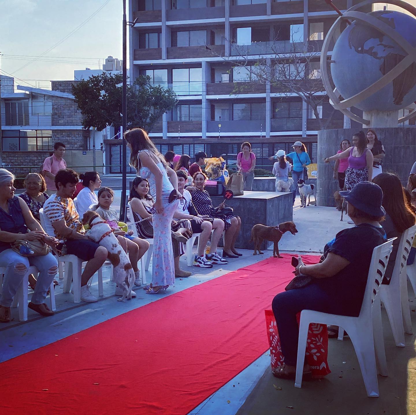Alrededor de las cinco de la tarde del domingo 24 de julio se realizó el paseo de siete perros de diferentes edades por una alfombra roja, para que con ello los asistentes lograrán conocerlos y motivarse a adoptarlos.