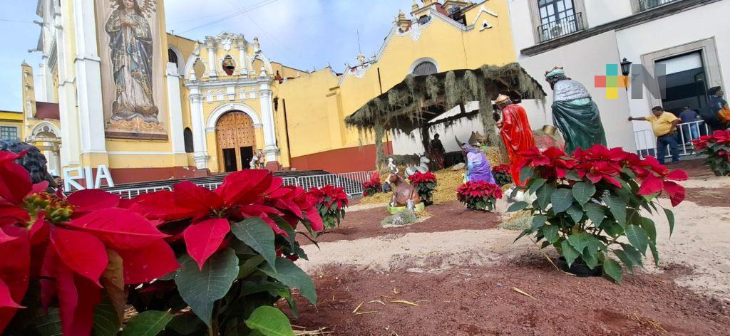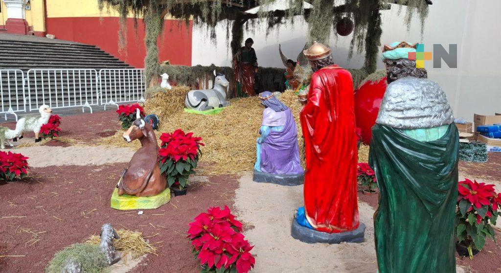 Xalapa, Ver.- Entre flores de noche buena y esferas gigantes, al pie de un pino de 20 metros de altura, las figuras de Melchor, Gaspar y Baltazar, pastorcitos y borregos, además de los peregrinos, adornan ya la plaza Lerdo de Xalapa.