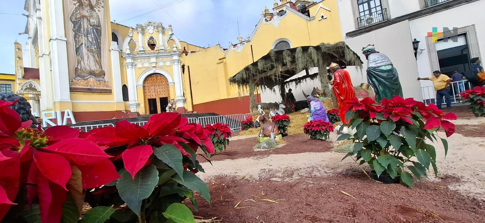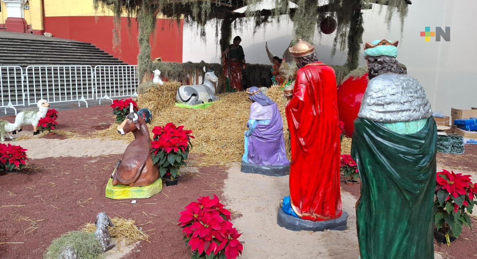 Xalapa, Ver.- Entre flores de noche buena y esferas gigantes, al pie de un pino de 20 metros de altura, las figuras de Melchor, Gaspar y Baltazar, pastorcitos y borregos, además de los peregrinos, adornan ya la plaza Lerdo de Xalapa.
