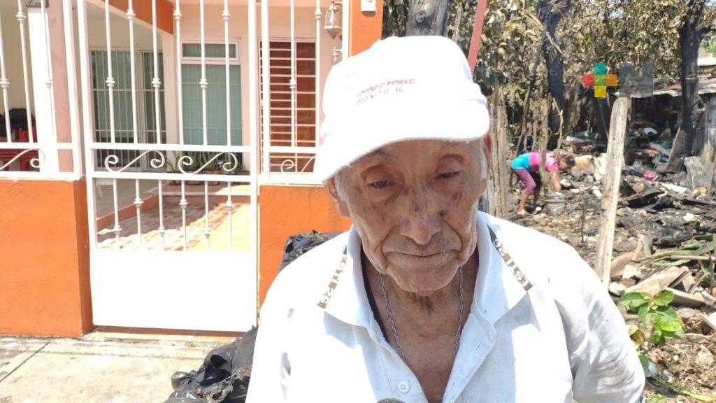 Veracruz, Ver.- Don Juanito Téllez vivió momentos de angustia. La noche de este lunes, un incendio destruyó su humilde vivienda localizada en la colonia Manlio Fabio Altamirano de Boca del Río.