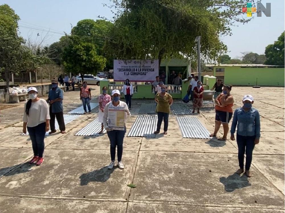 Chacaltianguis, Ver.- Entregó la presidenta del patronato municipal del DIF, de Chacaltianguis, Bertha Isabel Muñoz Torres, un total de 28 proyectos productivos, los cuales consistieron en tres estufas ecológicas y 400 láminas de las localidades, Las Sabanetas, Paso del Cura, Joachín; agradeciendo primeramente el apoyo al gobernador Cuitláhuac García Jiménez y a la directora del DIF Estatal, Rebeca Quintanar Barceló, mencionando que la entrega se realizó siguiendo los lineamientos precautorios que marca el sector salud.