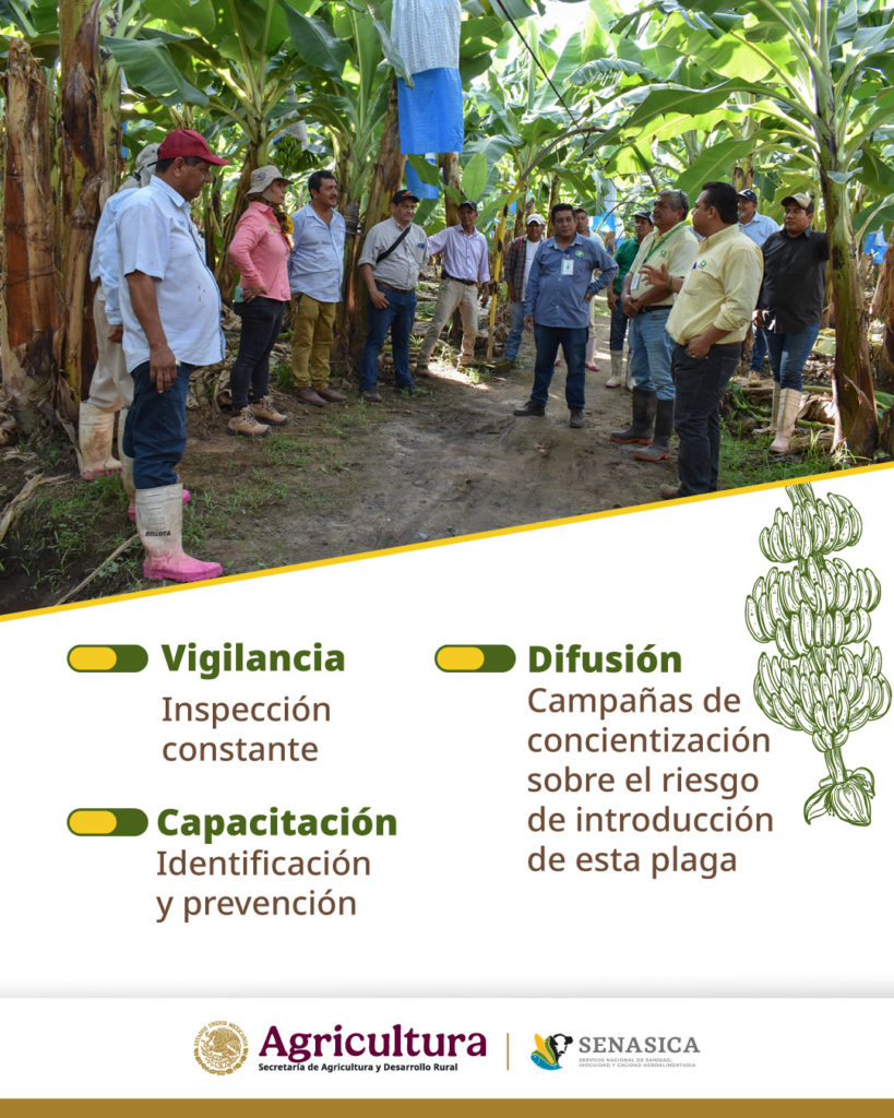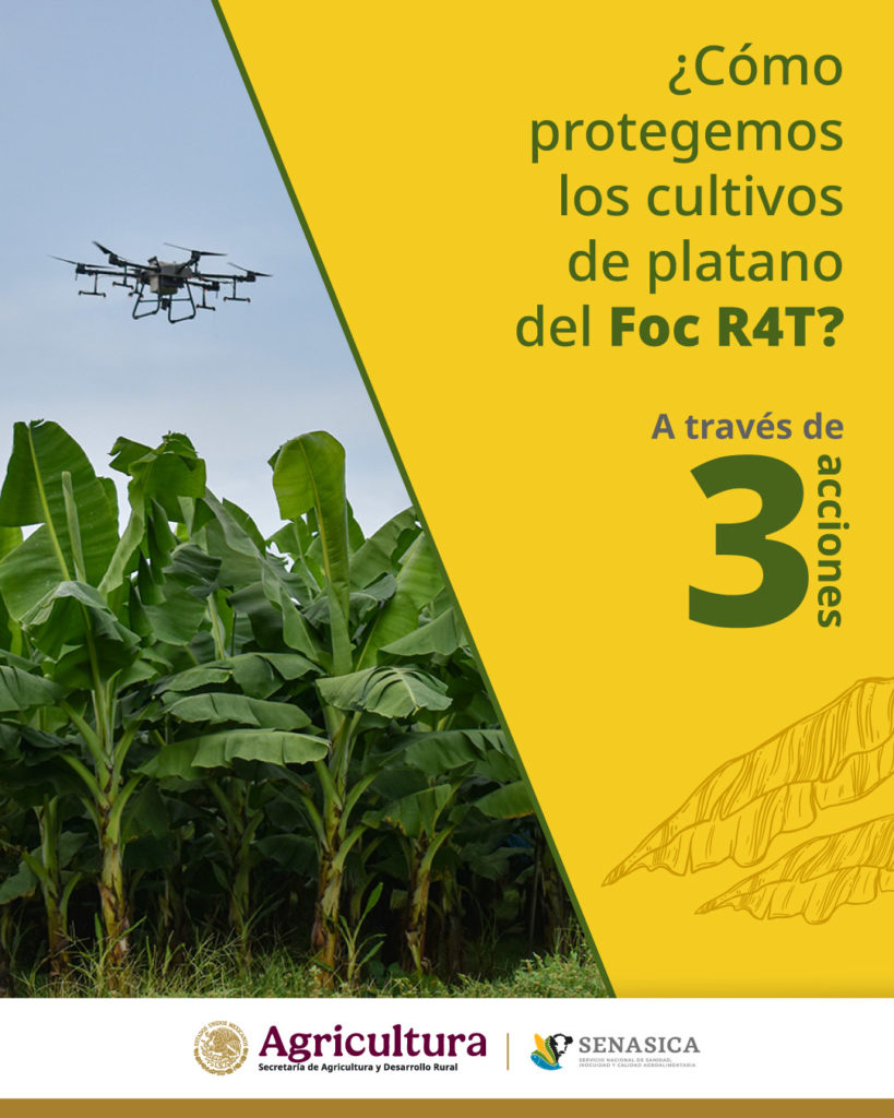 El plátano es uno de los cultivos más importantes del país, con más de 87 mil hectáreas y una producción anual de 2.6 millones de toneladas, por lo que estas acciones buscan proteger a los productores y garantizar el abasto para las familias mexicanas distribuidas en 16 estados.