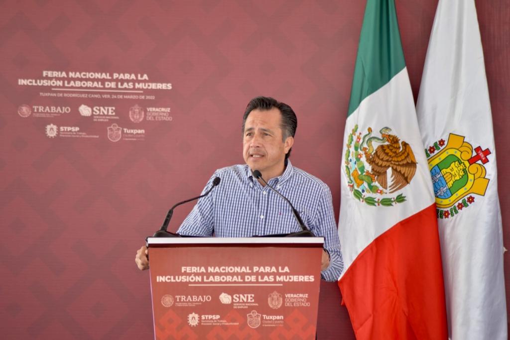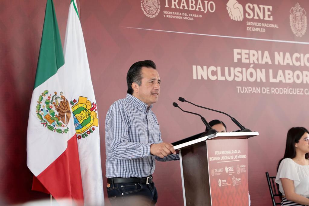 Tuxpan, Ver.- Convencido de que esta ciudad y puerto es un polo natural de atracción turística, el gobernador Cuitláhuac García Jiménez agradeció la confianza del sector empresarial y la apertura de espacios de trabajo a la población, refrendando el apoyo decidido a eventos como la Feria Nacional para la Inclusión Laboral de las Mujeres.