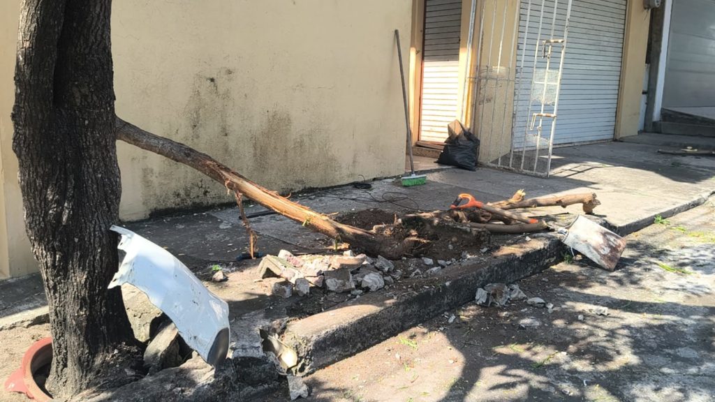Al huir de un percance vial, conductora derriba una barda y un árbol en Veracruz puerto