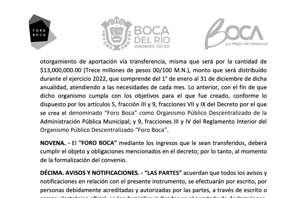 En sesión de Cabildo del Ayuntamiento de Boca del Río fue aprobado, entablar un “Convenio de colaboración para el otorgamiento de recursos”, el cual consistirá de aportación vía transferencia por 13 millones de pesos.
