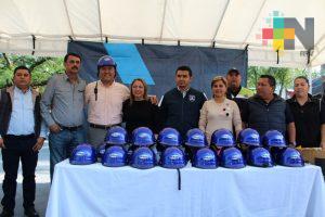 Misantla, Ver.- Como parte de las acciones para evitar accidentes viales y para promover el respeto a la ley de tránsito, el presidente municipal de Misantla, Othón Hernández Candanedo entregó cascos a motociclistas que circularon por la ciudad sin dicha protección.