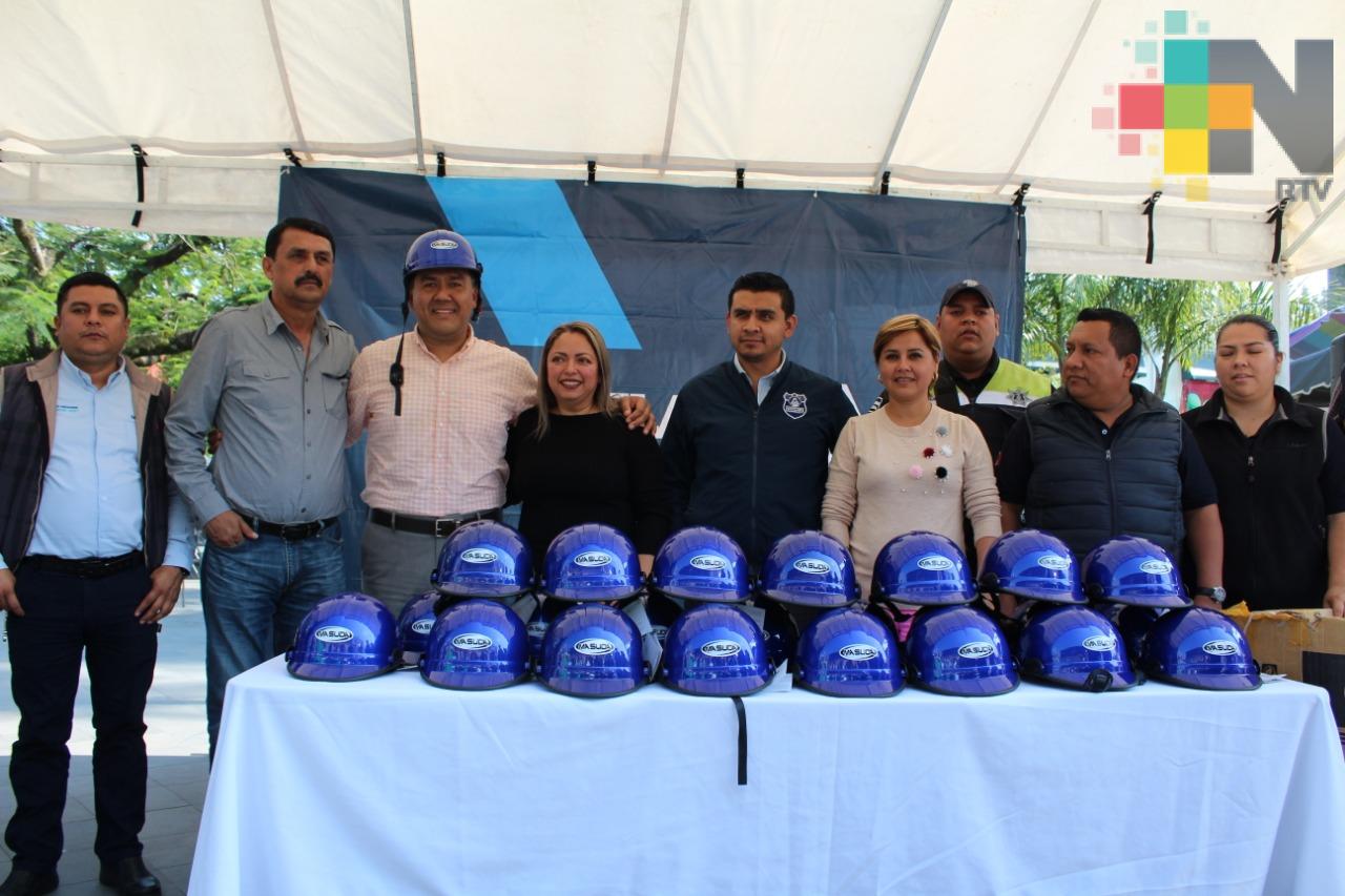 Misantla, Ver.- Como parte de las acciones para evitar accidentes viales y para promover el respeto a la ley de tránsito, el presidente municipal de Misantla, Othón Hernández Candanedo entregó cascos a motociclistas que circularon por la ciudad sin dicha protección.