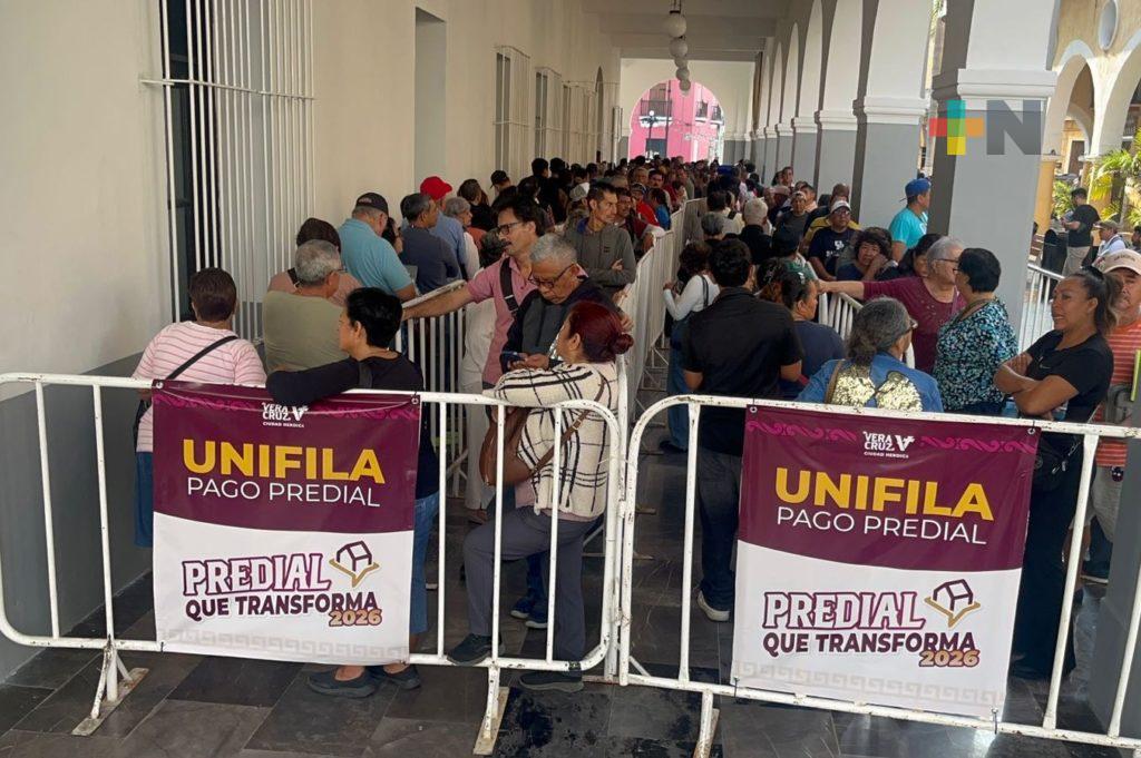 Veracruz, Ver.- Con gran participación ciudadana, donde los contribuyentes destacaron la importancia de acudir a cumplir con el pago del impuesto predial, el ayuntamiento de Veracruz inició el cobro correspondiente al ejercicio fiscal 2026. Esta contribución representa una base fundamental para fortalecer los servicios públicos y el desarrollo del municipio. Durante los meses de enero y febrero se aplican descuentos del 20 por ciento al público en general y del 50 por ciento a grupos vulnerables que ya se encuentran en el padrón, por pago anual anticipado.