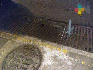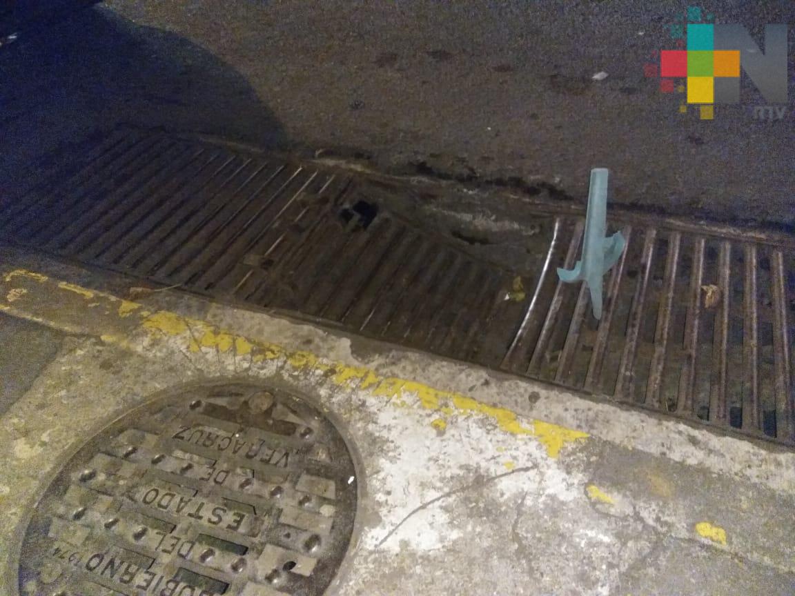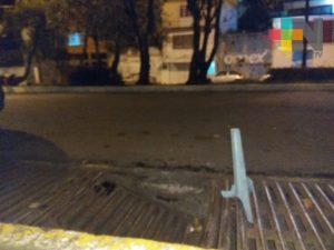 Xalapa, Ver.- Usuarios de redes sociales reportaron una alcantarilla rota afuera del campo Quirasco, sobre la calle Cayetano Rodriguez Beltran.