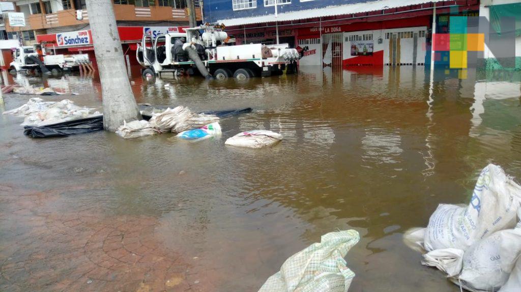 Pidió a la población no acercarse al área del malecón y toda la zona inundada, para evitar riesgos por la debilidad que presenta el suelo de la calle Madero, además, para que les permitan trabajar en el bombeo que realizan de 5 mil litros por segundo cada una de las 10 bombas colocadas en este margen.
