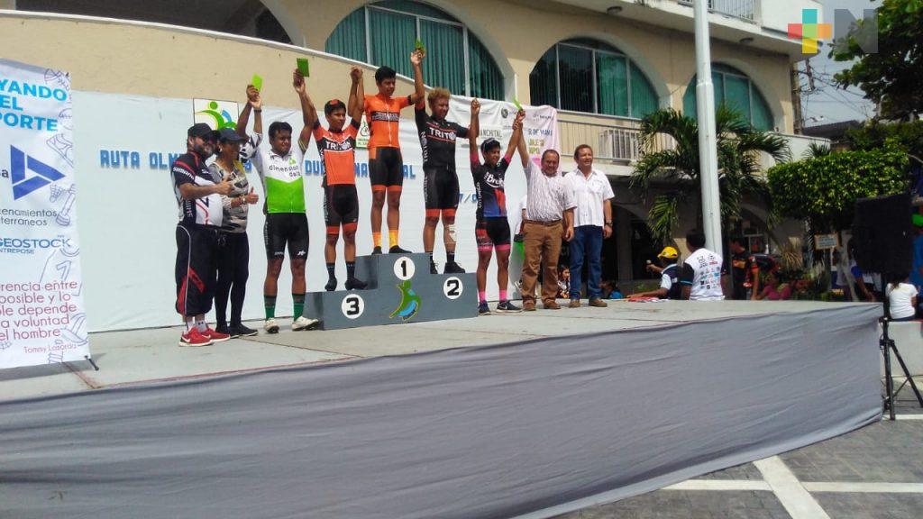 Coatzacoalcos, Ver.- Fabrizzio Garduza se adjudicó la primera edición de la Gran Ruta Ciclista Olmeca, que arrancó en el parque central de Agua Dulce y finalizó a un costado del palacio municipal de Nanchital.
