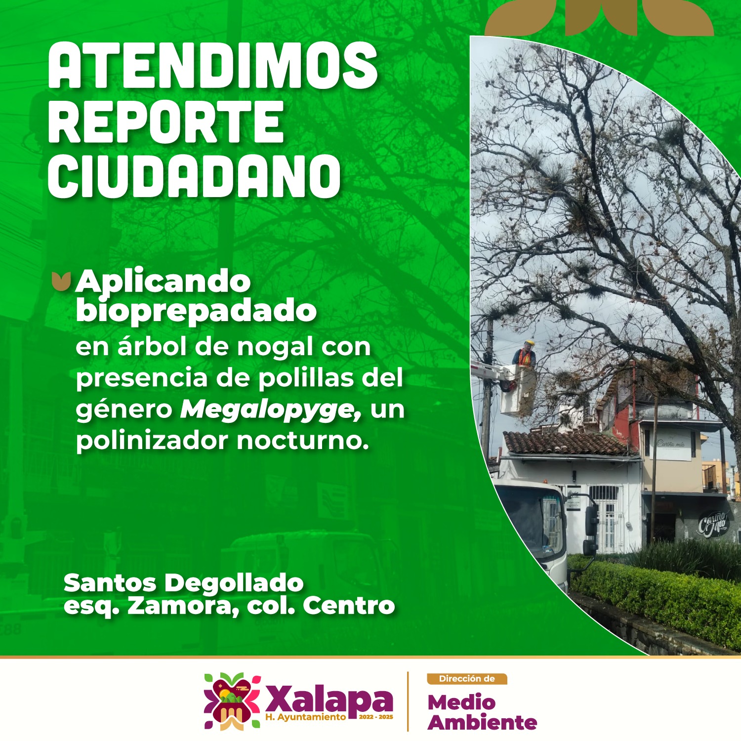 Xalapa, Ver.- Un árbol de nogal ubicado en la intersección de las calle Santos Degollado y Gutiérrez Zamora, en el centro de Xalapa se llenó desde hace dos semanas de polillas del género Megalopyge, conocidas como ‘borreguillas” que llegaron ahí en busca de alimento .