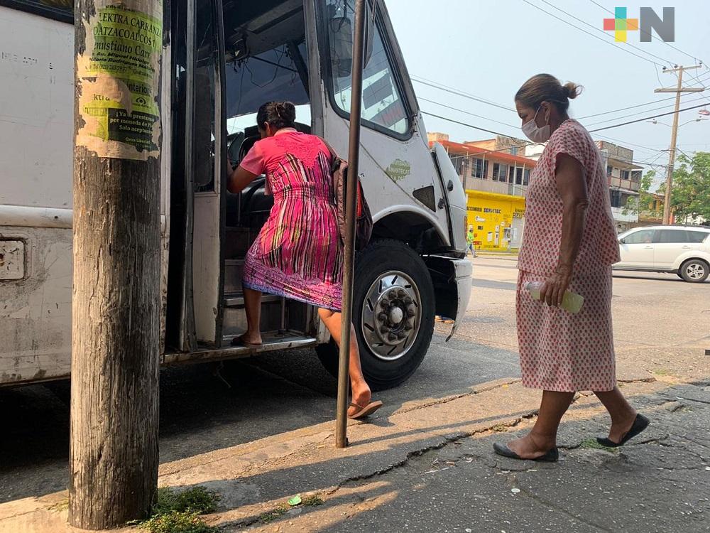 Algunos choferes y usuarios cumplen con medidas de sanidad en Coatzacoalcos