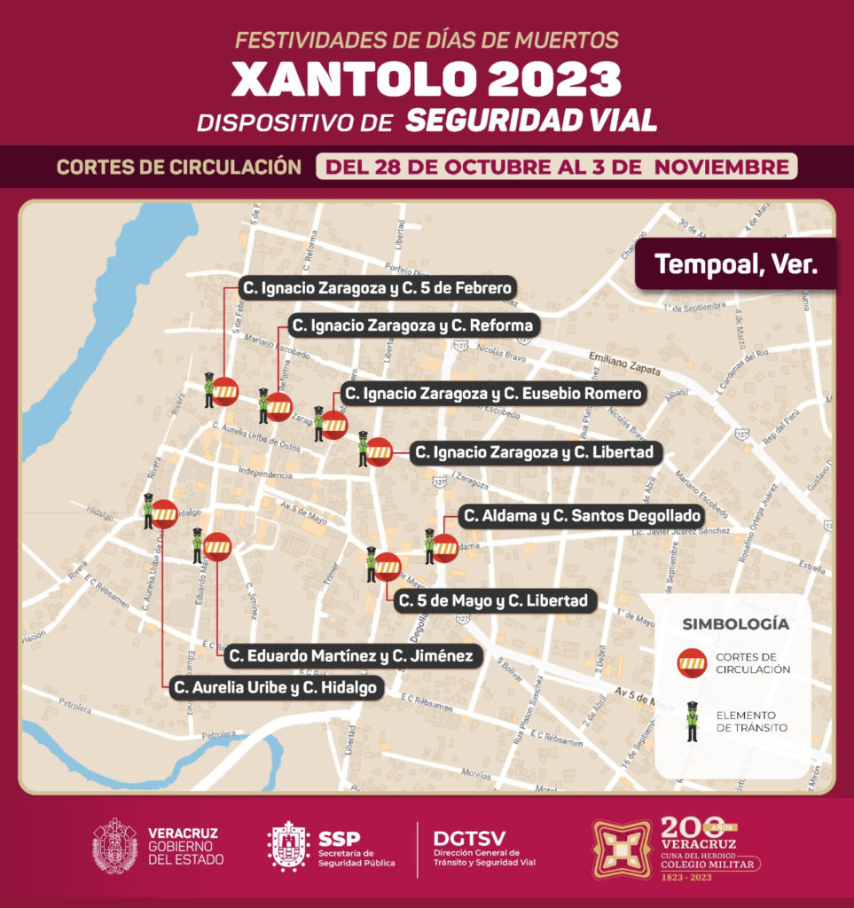 Durante el Xantolo 2023, en el municipio de Tempoal, se espera gran afluencia de turistas en los alrededores del Parque Central y el Foro Tradicional; por ello habrá cortes de circulación en las principales calles, entre éstas Zaragoza, Libertad, Reforma, Santos Degollado, 5 de Febrero e Hidalgo.